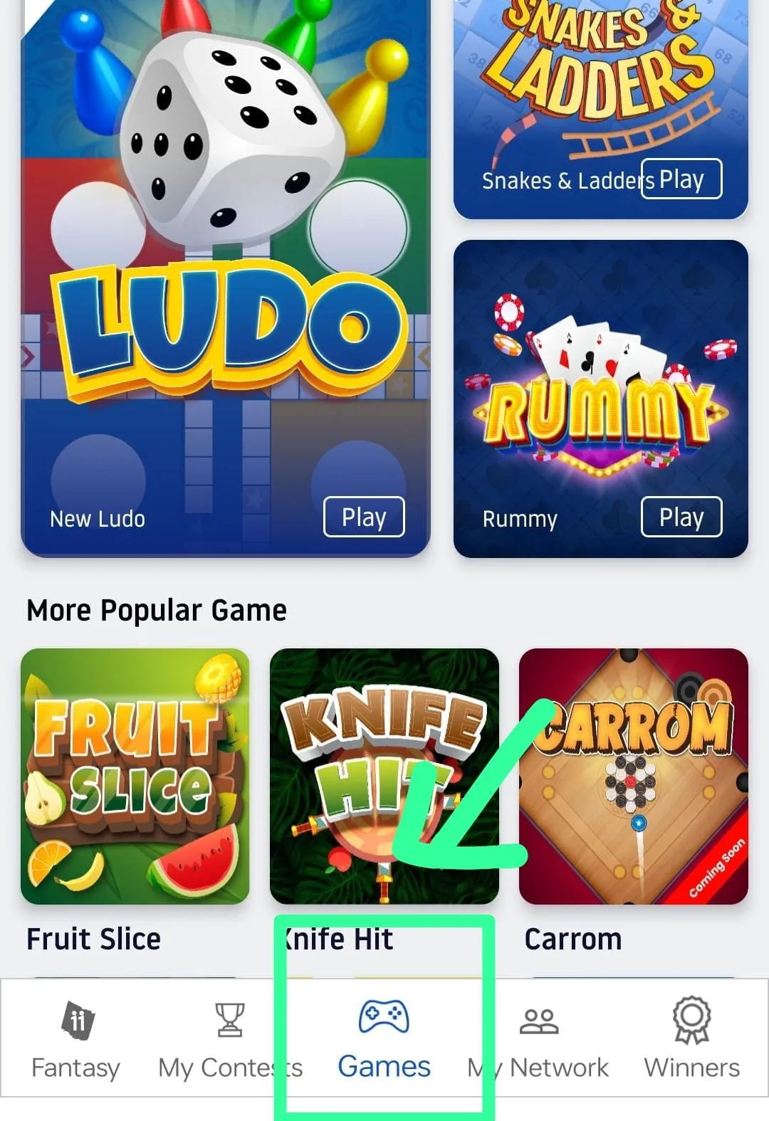 Beside this there are many other games like Ludo, snake Ladders, Rummy, fruits slice, knife hit, Carom, Bubble Shooter and quiz are available to play.